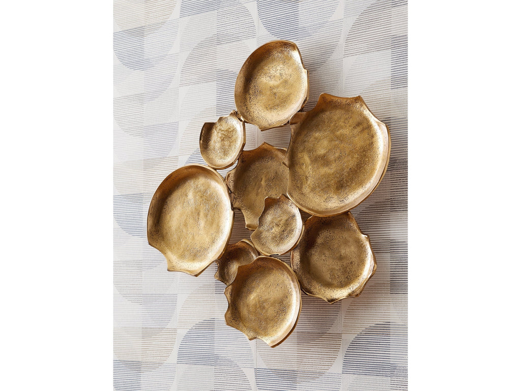 With a minimalistic design and antiqued gold tone finish, this wall art exudes modern sophistication. Whether displayed vertically or horizontally, this alluring metal sculpture is on the cutting edge of cool.