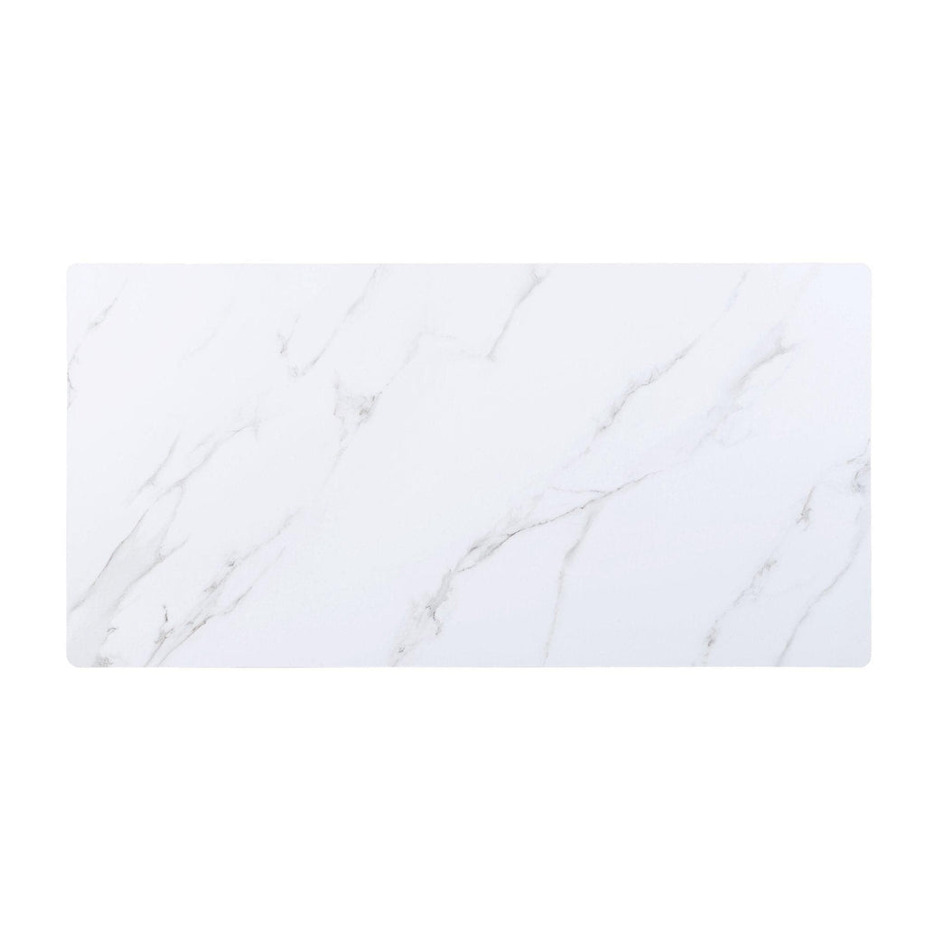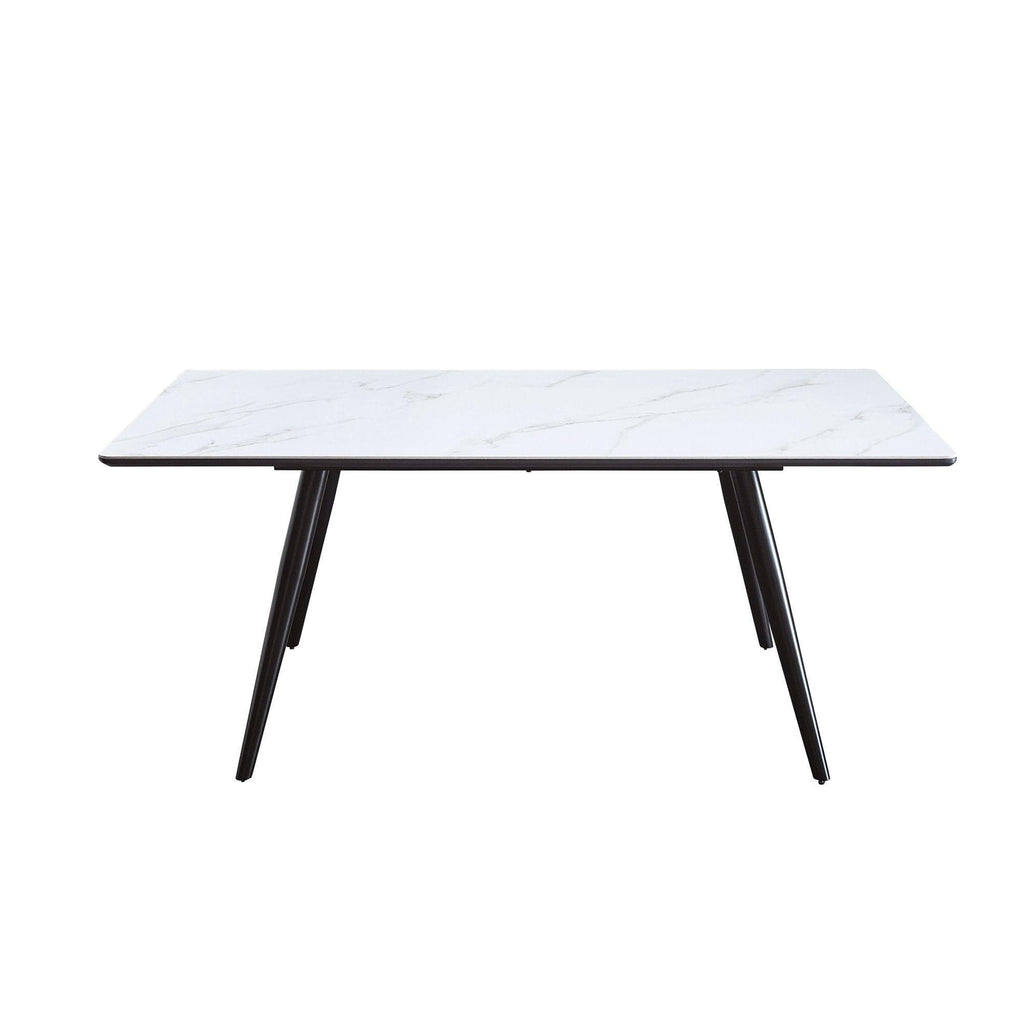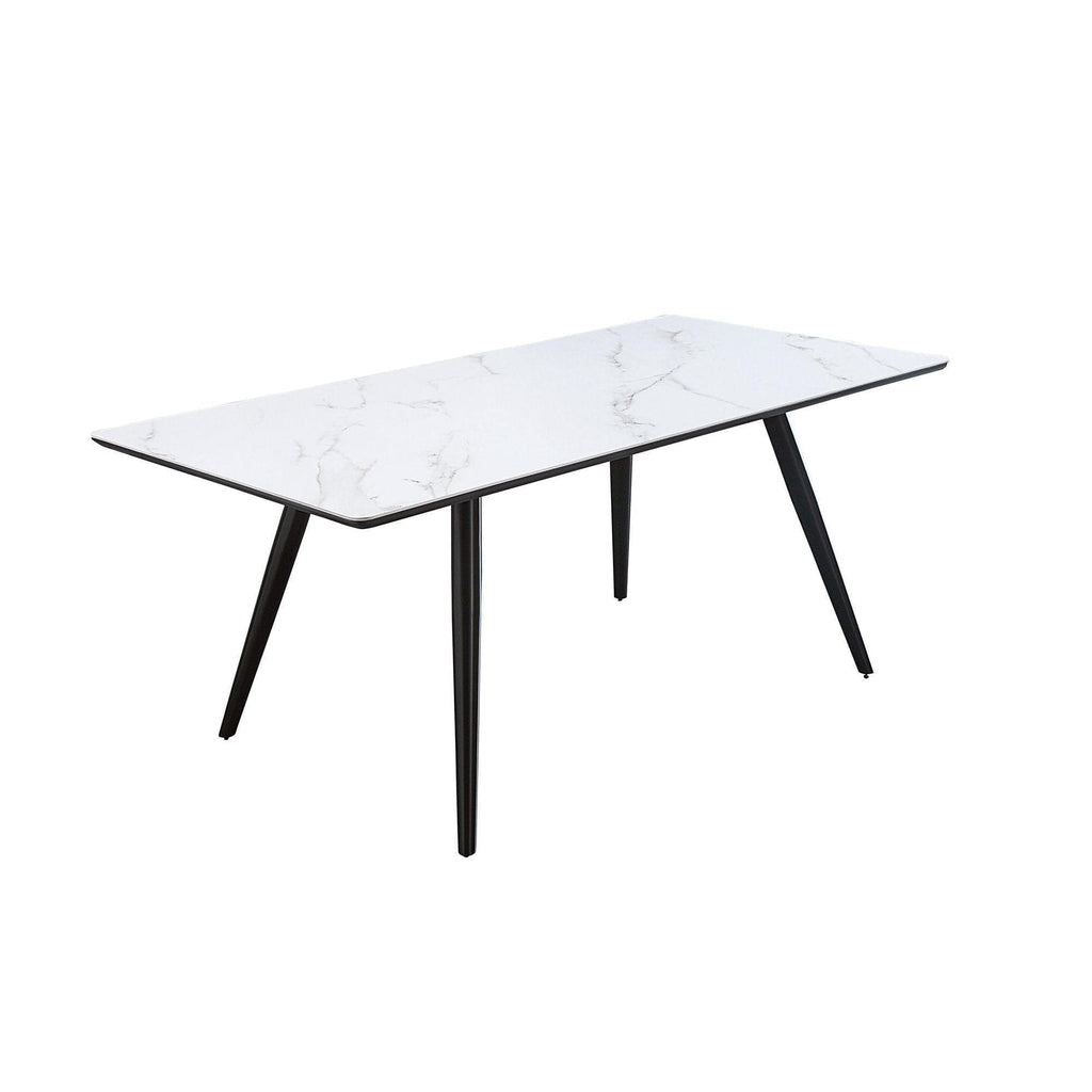 The Caspian dining table flaunts a clean-lined silhouette that brings in mid-century modern elegance to your dining space. Its rectangular shape presents a natural flow that beautifully pairs with various dining chair styles. The white faux marble tabletop adds a stylish touch, while the black splayed tapered legs with metal tip offer more depth and visual interest. Perfect for hosting special family gatherings and weekday dinners. Pair it with the matching side chairs. The side chairs offer black tapered legs and channel-tufted backrests.