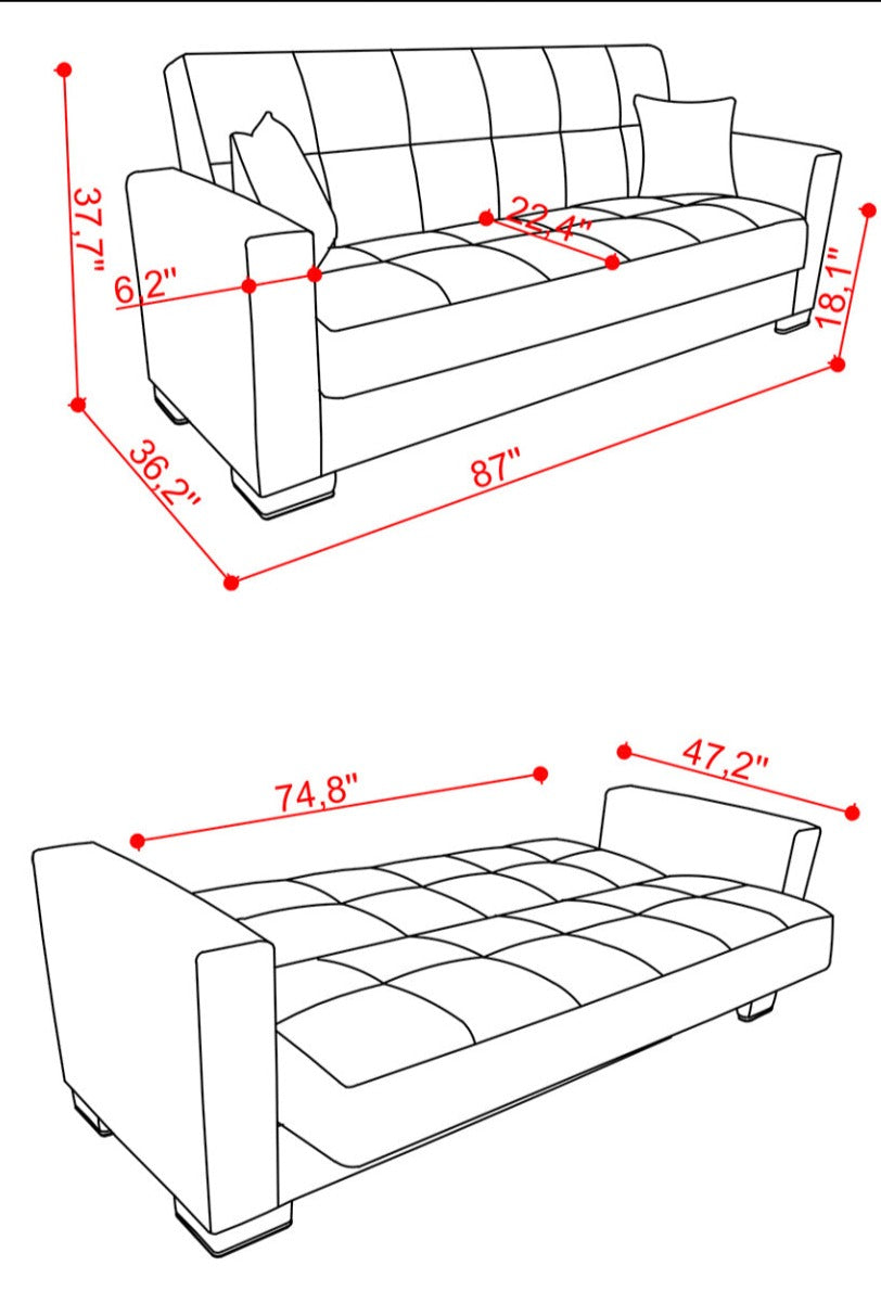 Sofa Bed: 87"L x 36.2"W x 37.7"H