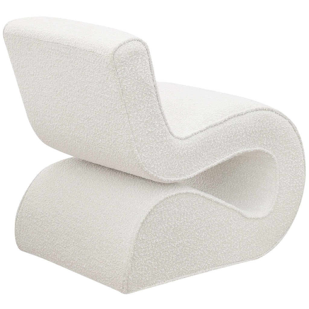 Step into the vanguard of home décor with this modern accent chair, its bouclé fabric not just on-trend but a textural revelation. The chair's unique shape is a conversation starter, sculpted to cradle and command attention in any setting. It's an embodiment of form meeting function, where the tactile allure of the fabric contrasts with the fluidity of its silhouette. This piece is not merely a chair; it's a testament to contemporary design, inviting you to immerse yourself in its stylish embrace. Let the chair's sinuous form and the fabric's cozy charm transport you to a world of chic comfort.