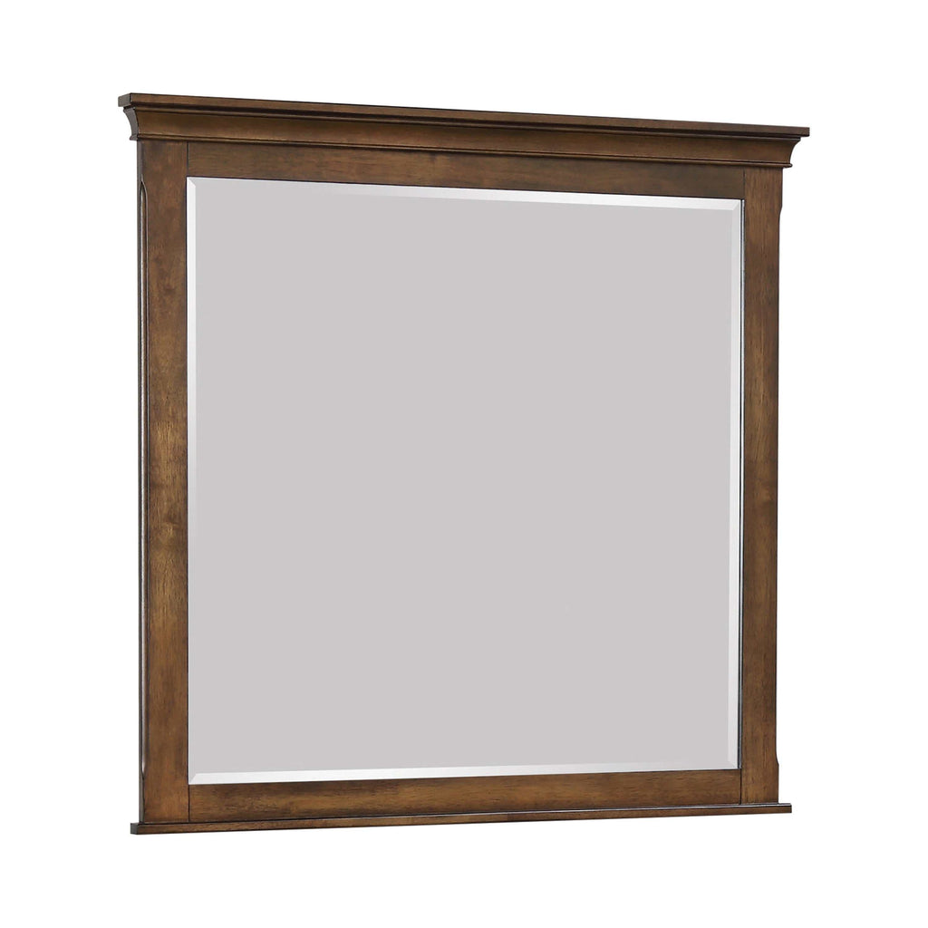 Open up a room with this classic square mirror. Featuring a subtle frame on top, the silhouette is otherwise sleek and smooth. The burnished oak finish helps to warm up a room with rustic charm. Hang above a dresser for a vanity-inspired feel in a country chic scheme. Add depth with the radiant mirrored glass and rich frame.