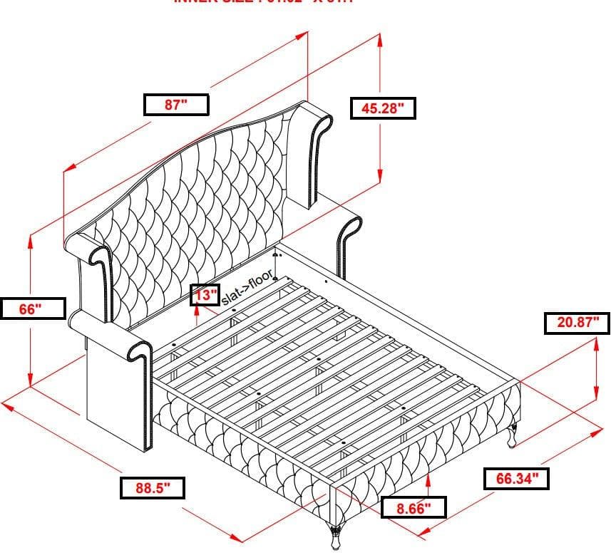 - Width: 87" Depth: 88.5" Height: 66.25"
