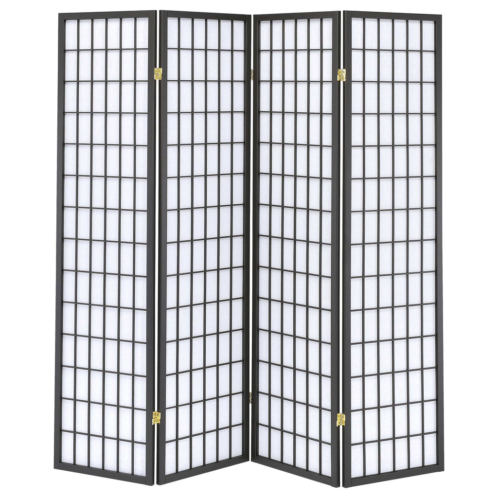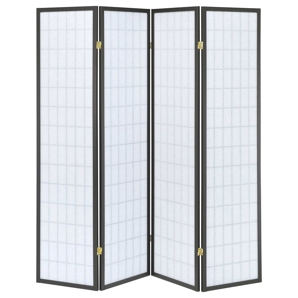 Fresh modern style brings a fun and functional addition to any space. Make this folding screen a staple in a modern living area or a commercial venue in need of privacy screens. With a linear grid design, it reflects a contemporary motif. Four hinged screens contract to offer a total privacy buffer, or fold inward to create a decorative element. Choose a frame finish that complements a custom space.